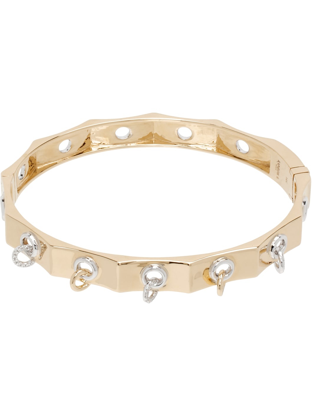 Cuff bracelet in 14k gold. · White gold grommets at length · Fixed hoops with pave-set 0.07 cttw diamonds · Flip-clasp fastening · Hallmarking at inner band · D2.25" Supplier color: 14k yg/Wg 14k gold, diamond. Made in Thailand 252333F007000
