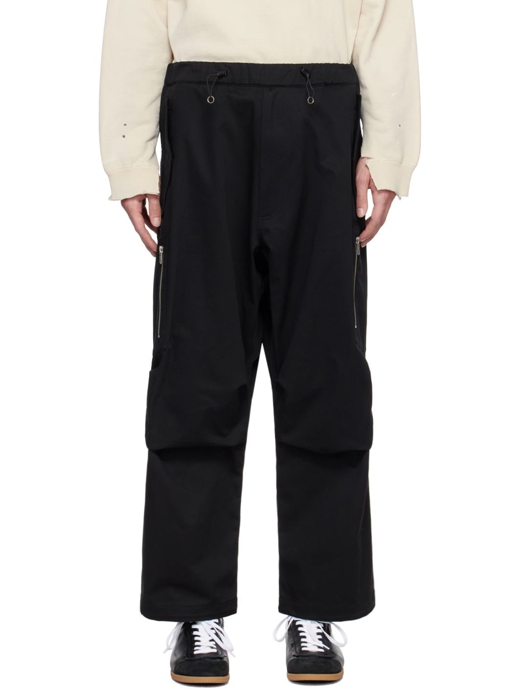 Cotton canvas cargo pants. · Bungee-style drawstring at elasticized waistband · Two-pocket styling · Zip pocket at outseams · Bungee-style drawstring at cuffs · Zip closure at back Supplier color: Black 100% cotton. Made in Poland 241172M188000