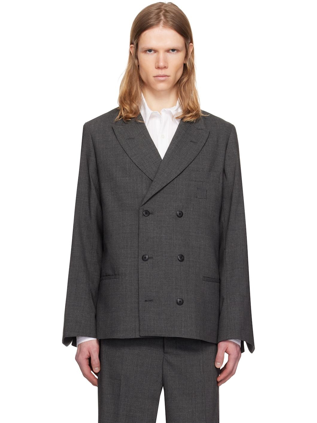 Gray Houndstooth Wool Blend Double Breasted Blazer