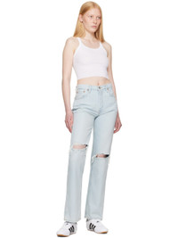 Non-stretch organic cotton denim jeans. Fading, whiskering, and subtle distressing throughout. · Loose-fit · High-rise · Belt loops · Five-pocket styling · Button fly · Rip at knees · Logo patch at back waistband · Contrast stitching in tan Supplier color: Bleach destroy Body: 100% organic cotton. Lining: 65% polyester, 35% cotton. Made in Turkey 252800F069003