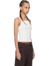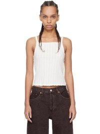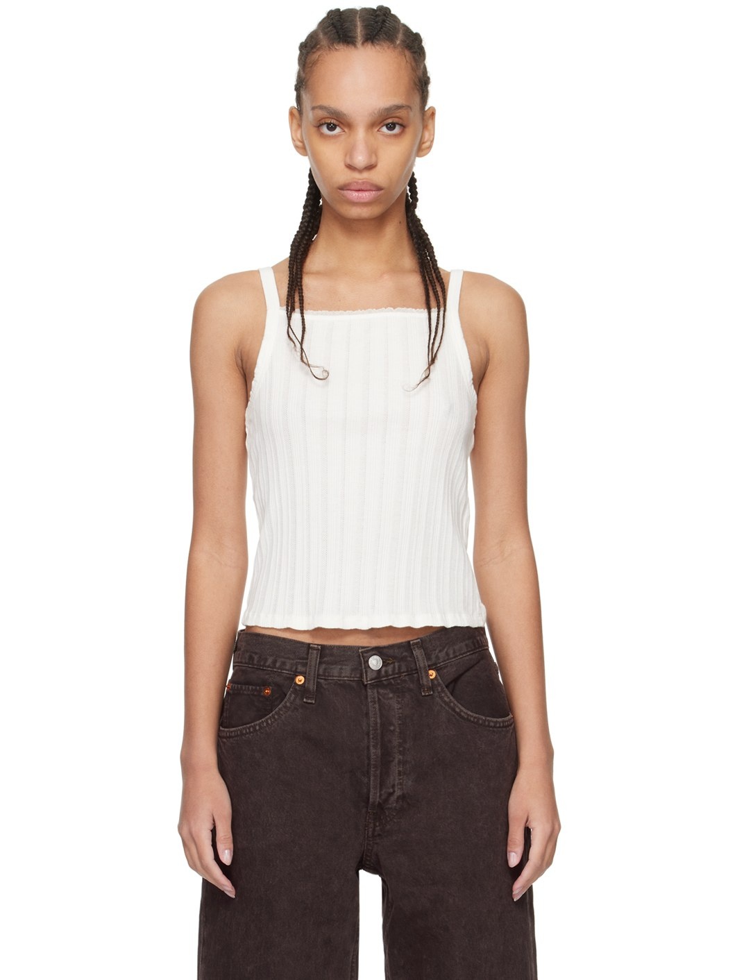 Pointelle and rib knit cotton tank top. Lace trim at square neck. Supplier color: Vintage white 100% cotton. Made in Portugal 241800F111009