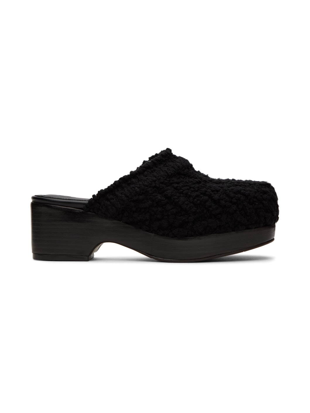 Textured cable-knit slip-on loafers in black. · Logo embossed at padded footbed · Grained leather lining · Stacked leather platform midsole · Treaded rubber outsole · Platform: H2.5 in Supplier color: Black Upper: textile. Sole: leather, rubber. Made in South Korea 231775F121001