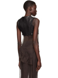 Grained goatskin vest. · Scoop neck · Zip closure · Self-tie trim at front · Eyelet at armscyes · Adjustable button tabs at back hem · Partial twill lining Supplier color: Black Body: 100% goatskin. Lining: 50% polyester, 50% rayon. Made in South Korea 241775F111003