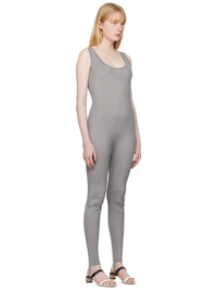 Semi-sheer rib knit nylon-blend bodysuit. Metallic thread detailing throughout. · Scoop neck · Stirrup at cuffs Supplier color: Silver 55% polyamide, 45% polyester. Made in South Korea 241775F070000