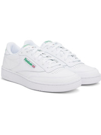 Low-top buffed leather sneakers in white. · Perforated detailing at vamp · Lace-up closure · Logo patch at padded tongue · Padded collar · Inset logo patch at outer side · Logo printed at heel tab · Terry cloth lining · Foam rubber midsole · Treaded rubber sole Supplier color: Int white/Green Upper: leather. Sole: rubber. Made in Viet Nam 251749M237074