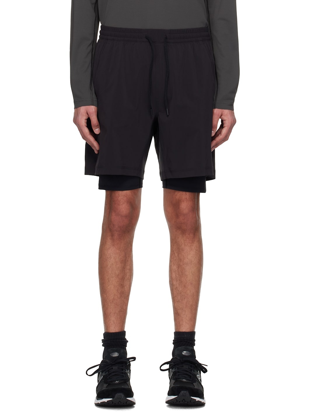 Lightweight stretch nylon jersey shorts. Integrated recycled nylon-blend jersey underlay compression shorts. · Moisture-wicking and quick-drying · Layered construction · Drawstring at elasticized waistband · Three-pocket styling · Logo patch at outseam Supplier color: Black Body: 85% nylon, 15% elastane. Lining: 59% recycled nylon, 41% elastane. Made in Sri Lanka 251027M193005