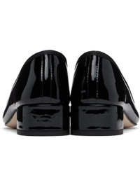 Patent leather heels in black. · Bow accent at vamp · Grosgrain trim at collar · Padded leather footbed · Plain-woven cotton lining · Covered block heel with rubber injection · Suede sole · Heel: H1.25" Supplier color: Black Leather. Made in France 251296F122024