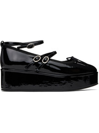 Patent leather Mary Jane-style ballerina flats in black. · Bow accent and pin-buckle straps at vamp · Grosgrain trim at collar · Detachable pin-buckle ankle strap · Buffed lambskin lining · Covered platform midsole · Rubber sole · Platform: H2" Supplier color: Black Upper: leather. Sole: rubber. Made in Portugal 251296F118095