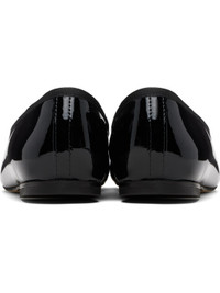 Patent leather ballerina flats. · Pointed toe · Bow accent and grosgrain trim at collar · Plain-woven lining · Stacked leather heel with rubber injection · Rubber sole Supplier color: Black Upper: leather. Sole: rubber. Made in France 252296F118045