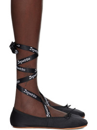 Satin ballerina flats in black. · Bow accent and grosgrain trim at collar · Detachable wraparound self-tie ankle straps · Logo pattern at ankle straps · Twill lining · Leather sole Supplier color: Black Upper: textile. Sole: leather. Made in Morocco 242296F118065