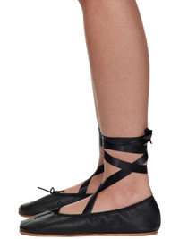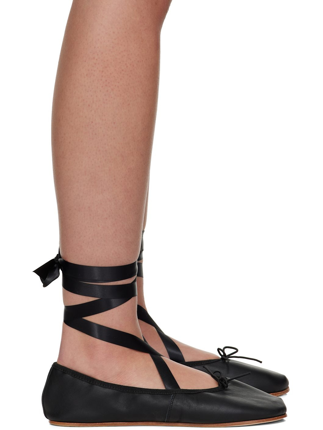 Grained nappa calfskin ballerina flats. · Bow accent and grosgrain trim at collar · Wraparound self-tie satin ankle straps · Cotton twill lining · Leather sole Supplier color: Black Upper: calfskin. Sole: leather. Made in Morocco 252296F118014