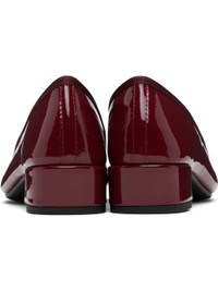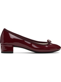 Patent leather heels. · Bow accent at vamp · Grosgrain trim at collar · Plain-woven cotton lining · Covered block heel with rubber injection · Treaded rubber sole · Heel: H1.25" Supplier color: Pommard red Upper: leather. Sole: leather, rubber. Made in France 252296F122017