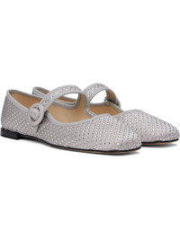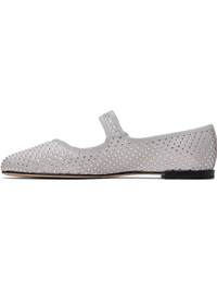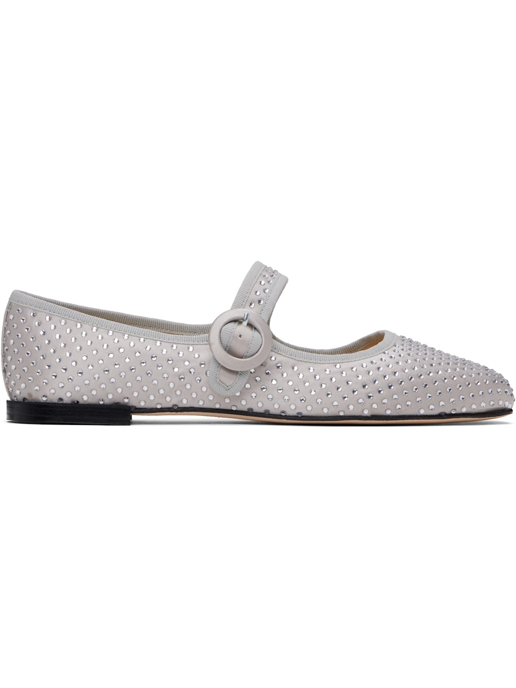 Satin Mary Jane-style ballerina flats in gray. · Crystal-cut appliques throughout · Square toe · Pin-buckle strap at vamp · Grosgrain trim at strap and collar · Buffed leather lining · Nubuck sole with rubber injection Supplier color: Light grey Upper: textile. Sole: leather, rubber. Made in Portugal 251296F118111