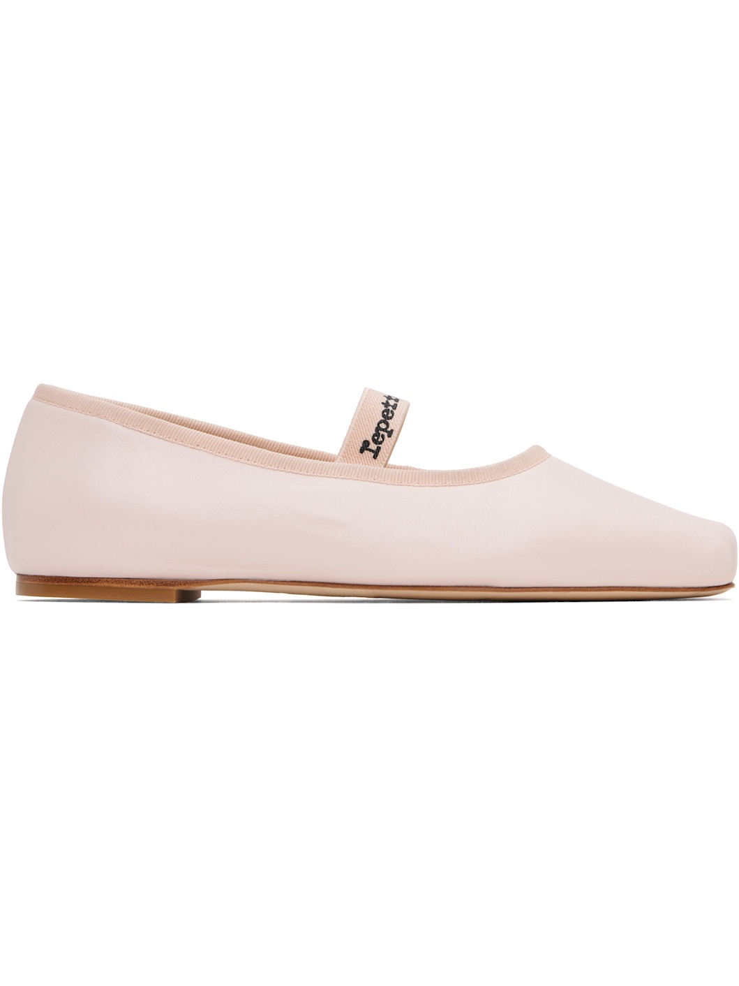 Nappa calfskin ballerina flats in pink. · Square toe · Logo-printed elasticized strap at vamp · Grosgrain trim at collar · Grained lambskin lining · Nubuck sole Supplier color: Iconic pink Upper: calfskin. Sole: leather. Made in Spain 251296F118083
