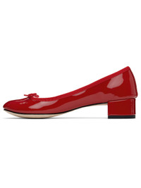 Patent leather heels in red. · Bow accent at vamp · Grosgrain trim at collar · Padded leather footbed · Plain-woven cotton lining · Covered block heel with rubber injection · Suede sole · Heel: H1.25" Supplier color: Flame red Upper: leather. Sole: leather, rubber. Made in France 251296F122023