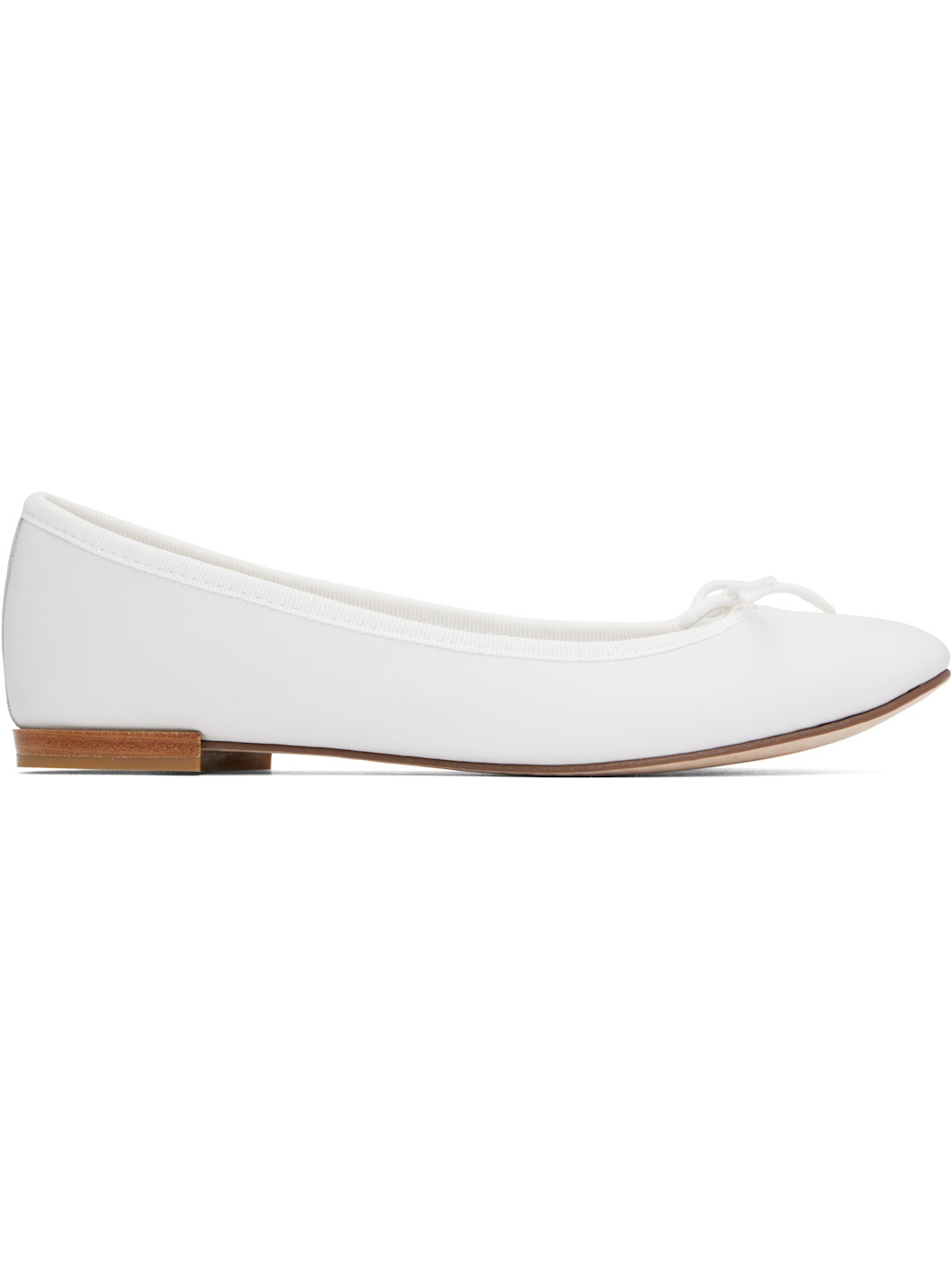 Nappa calfskin ballerina flats in white. · Bow accent at vamp · Grosgrain trim at collar · Cotton twill lining · Stacked leather heel with rubber injection · Nubuck sole Supplier color: White Upper: calfskin. Sole: leather, rubber. Made in France 251296F118084