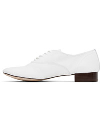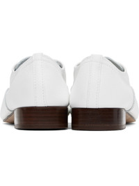 Grained nappa calfskin oxfords in white. · Lace-up closure · Partial suede lining · Stacked leather heel with rubber injection · Nubuck sole Supplier color: White Upper: calfskin. Sole: leather. Made in France 251296F120003