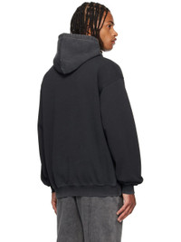 Heavyweight 480 gsm French terry hoodie. · Pre-shrunk and piece-dyed · Fading throughout · Press-stud fastening at hood · Logo graphic printed at front · Logo plaque at kangaroo pocket · Rib-knit hem and cuffs · Dropped shoulders Supplier color: Vintage Black Body: 100% cotton. Trim: 95% cotton, 5% elastane. Made in Portugal 252655M202009