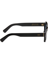 Handcrafted square acetate-frame sunglasses in black. · Blue lenses · Integrated nose pads · Inset logo hardware at temples · Includes pouch · Size: 52.20 145 Supplier color: Azure Acetate. Made in Italy 252191M134044