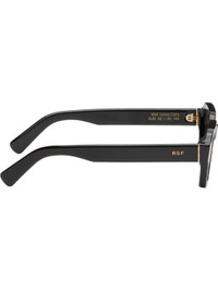 Handcrafted square acetate-frame sunglasses in black. · Gray lenses · Integrated nose pads · Inset logo hardware at temples · Gold-tone hardware · Includes pouch · Size: 52.20 145 Supplier color: Black Acetate. Made in Italy 252191M134042