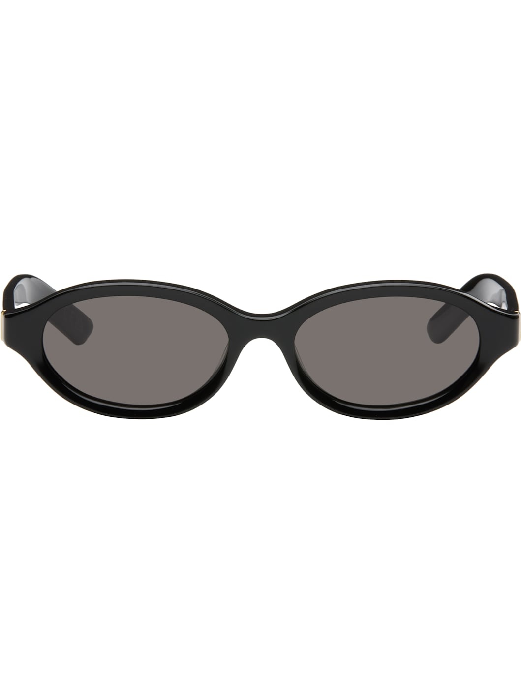Oval acetate-frame sunglasses in black. · Handcrafted · Black lenses · 100% UVA/UVB protection, category 3 · Integrated nose pads · Inset logo hardware at temples · Includes pouch · Size: 54.17 145 Supplier color: Black Acetate. Made in Italy 252191M134032