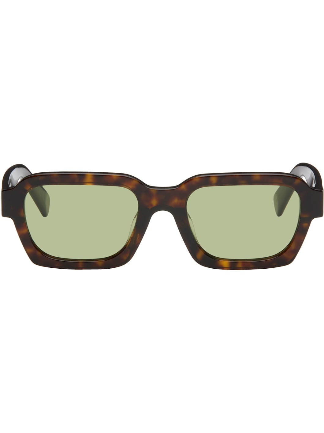 Handcrafted square tortoiseshell acetate-frame sunglasses in brown and black. · Green lenses · Integrated nose pads · Inset logo hardware at temples · Gold-tone hardware · Includes pouch · Size: 52.20 145 Supplier color: Havana 3627 Acetate. Made in Italy 252191M134045