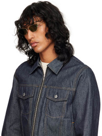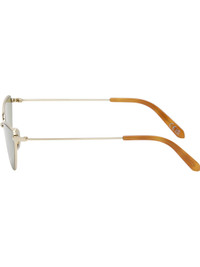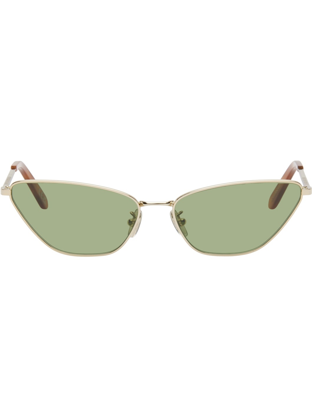 Handcrafted cat-eye metal-frame sunglasses in gold tone. · Green lenses · Adjustable rubber nose pads · Semi-transparent tortoiseshell acetate temple tips · Includes pouch · Size: 61.16 140 Supplier color: Light Havana Metal, acetate. Made in Italy 251191M134017