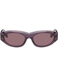 Cat-eye semi-transparent acetate-frame sunglasses. · Purple lenses · Integrated nose pads · Inset logo hardware at temples · Includes case · Size: 55.20 145 Supplier color: Melanzana Acetate. Made in Italy 261191M134010