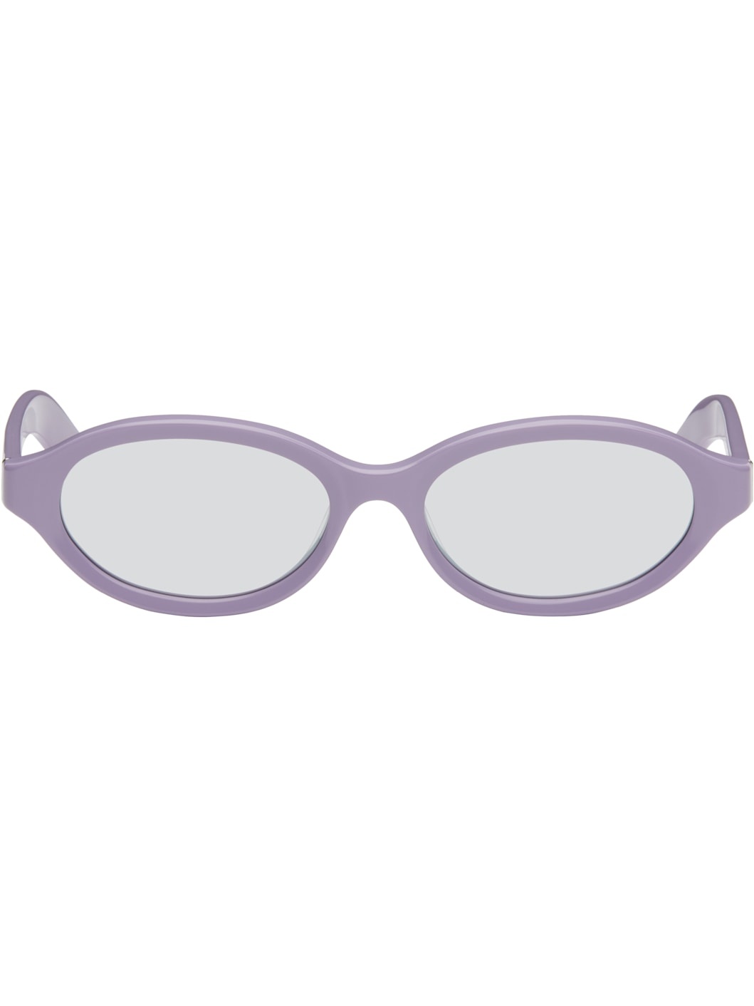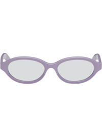 Oval acetate-frame sunglasses in purple. · Handcrafted · Silver lenses, category 1 · Integrated nose pads · Inset logo hardware at temples · Includes pouch · Size: 54.17 145 Supplier color: Caramella Acetate. Made in Italy 252191M134028