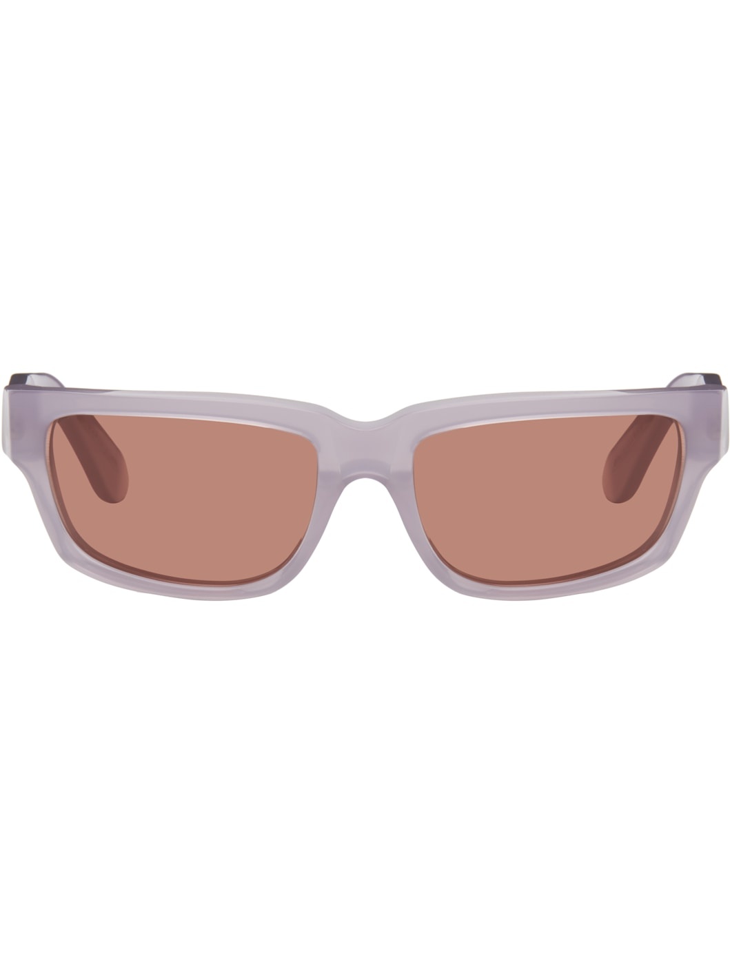 Handcrafted rectangular semi-transparent acetate-frame sunglasses in purple. · Orange lenses · Integrated nose pads · Inset logo hardware at temples · Exposed core wires · Includes pouch · Size: 60.19 140 Supplier color: Light purple Acetate. Made in Italy 251191M134011