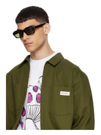Handcrafted rectangular acetate-frame sunglasses in tortoiseshell. · Green lenses · Integrated nose pads · Inset logo at temples · Includes case · Size: 56.20 145 Supplier color: Dark havana