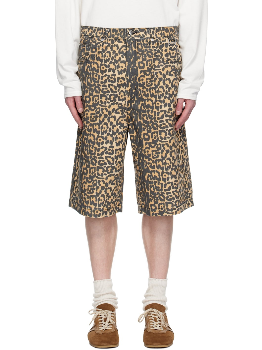 Beige Leopard Traxedo Baggy Denim Shorts