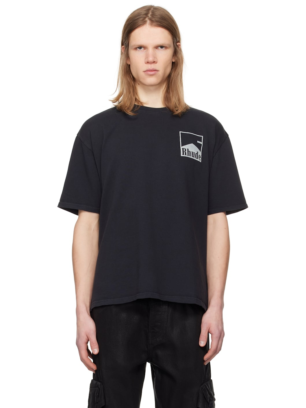 Heavyweight cotton jersey T-shirt. · Rib-knit crewneck · Logo graphic printed at front and back · Dropped shoulders Supplier color: VTG black 100% cotton. Made in United States 251923M213005