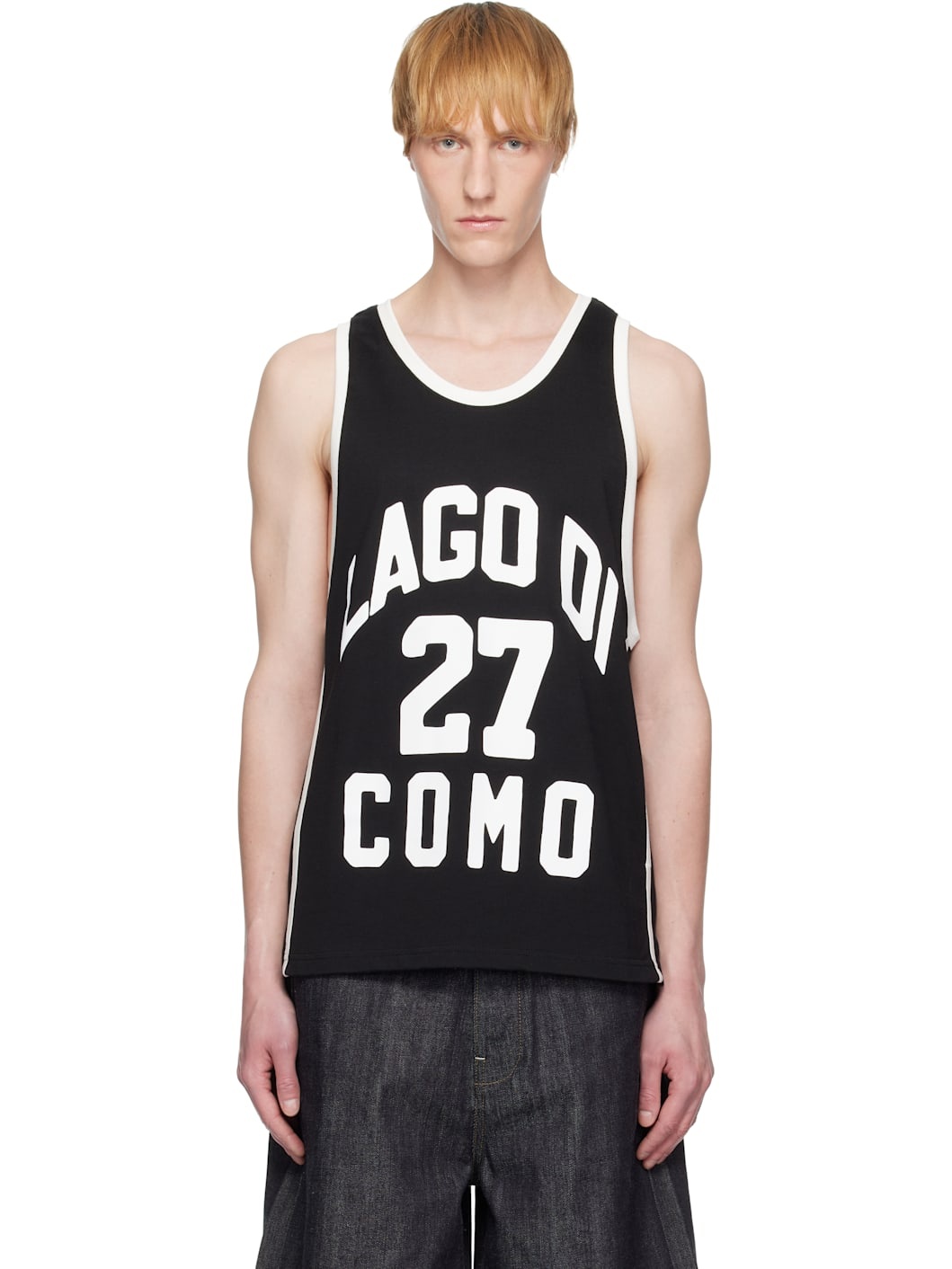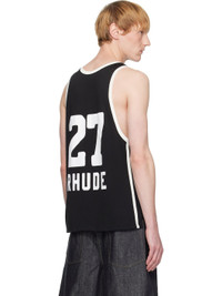 Cotton-blend jersey tank top. · Rib-knit scoop neck and armscyes · Text and logo printed at front and back · Stripes at vented side seams Part of the Rhude x Como 1907 collaboration. Supplier color: Black/White 63% cotton, 37% rayon. Made in United States 252923M214004