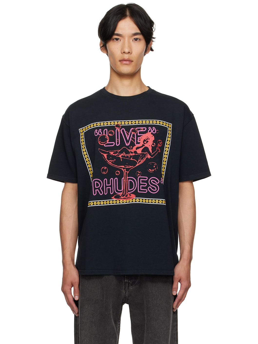 Cotton jersey T-shirt. · Rib-knit crewneck · Logo graphic printed at front · Dropped shoulders Supplier color: Vintage black 100% cotton. Made in United States 252923M213013