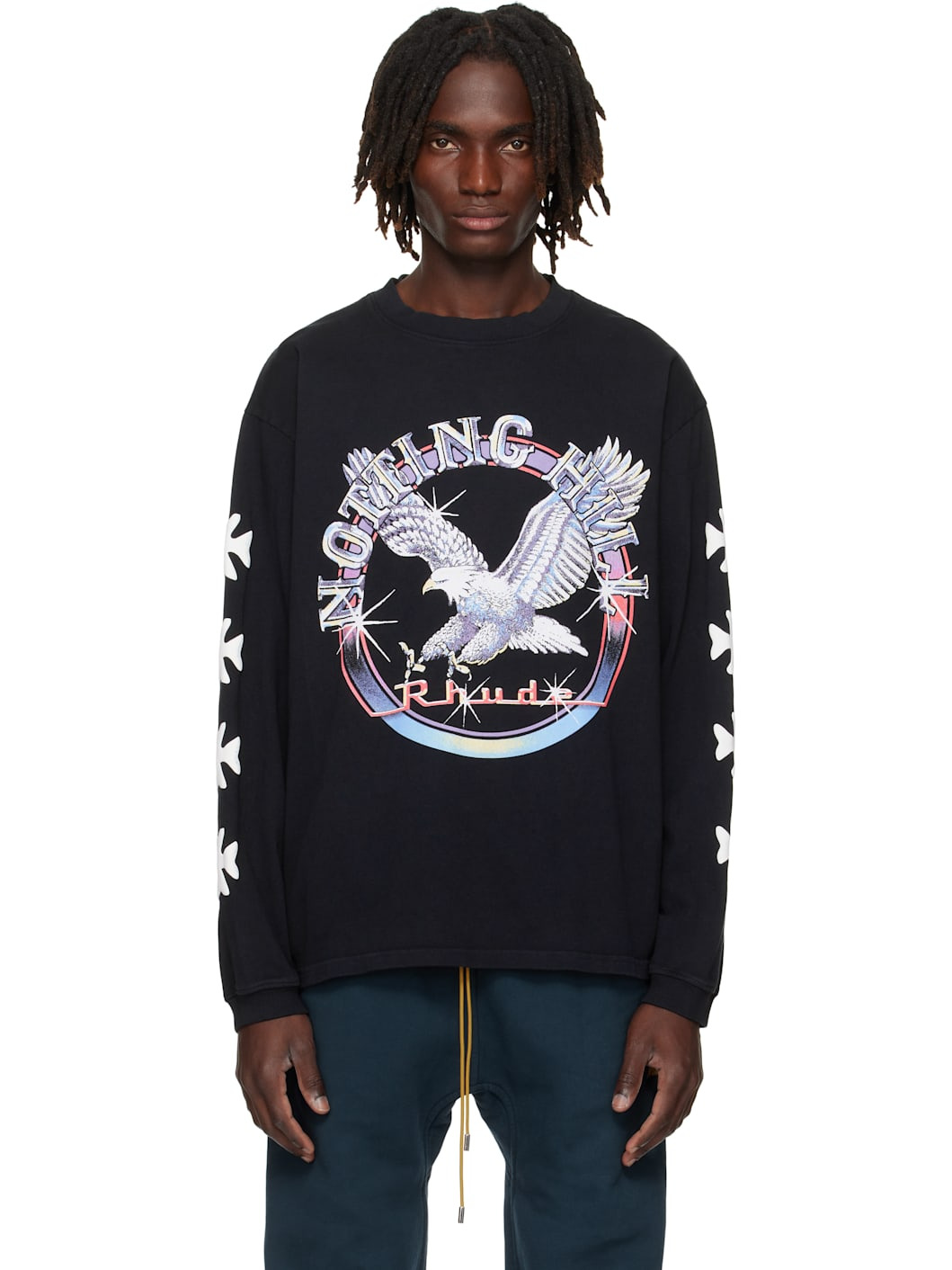 Cotton jersey T-shirt. · Rib-knit crewneck and cuffs · Logo graphic printed at chest · Graphics printed at sleeves Supplier color: Vintage Black 100% cotton. Made in United States 252923M213025