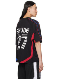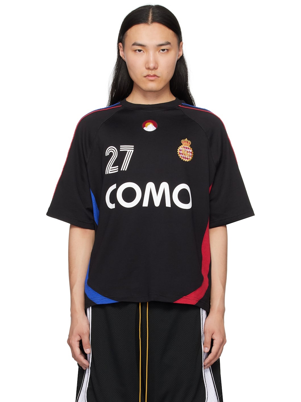 Cotton-blend jersey top. · Paneled construction · Rib-knit crewneck · Text printed and embroidered graphics at front · Piping at raglan sleeves · Logo and text printed at back Supplier color: Black/Navy/Red 63% cotton, 37% rayon. Made in United States 252923M213001
