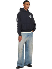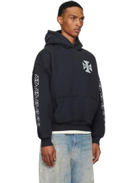 Cotton fleece hoodie. · Fading, graphic, logo, and text printed throughout · Kangaroo pocket · Rib-knit hem and cuffs · Dropped shoulders Supplier color: Vintage black 100% cotton. Made in United States 252923M202006