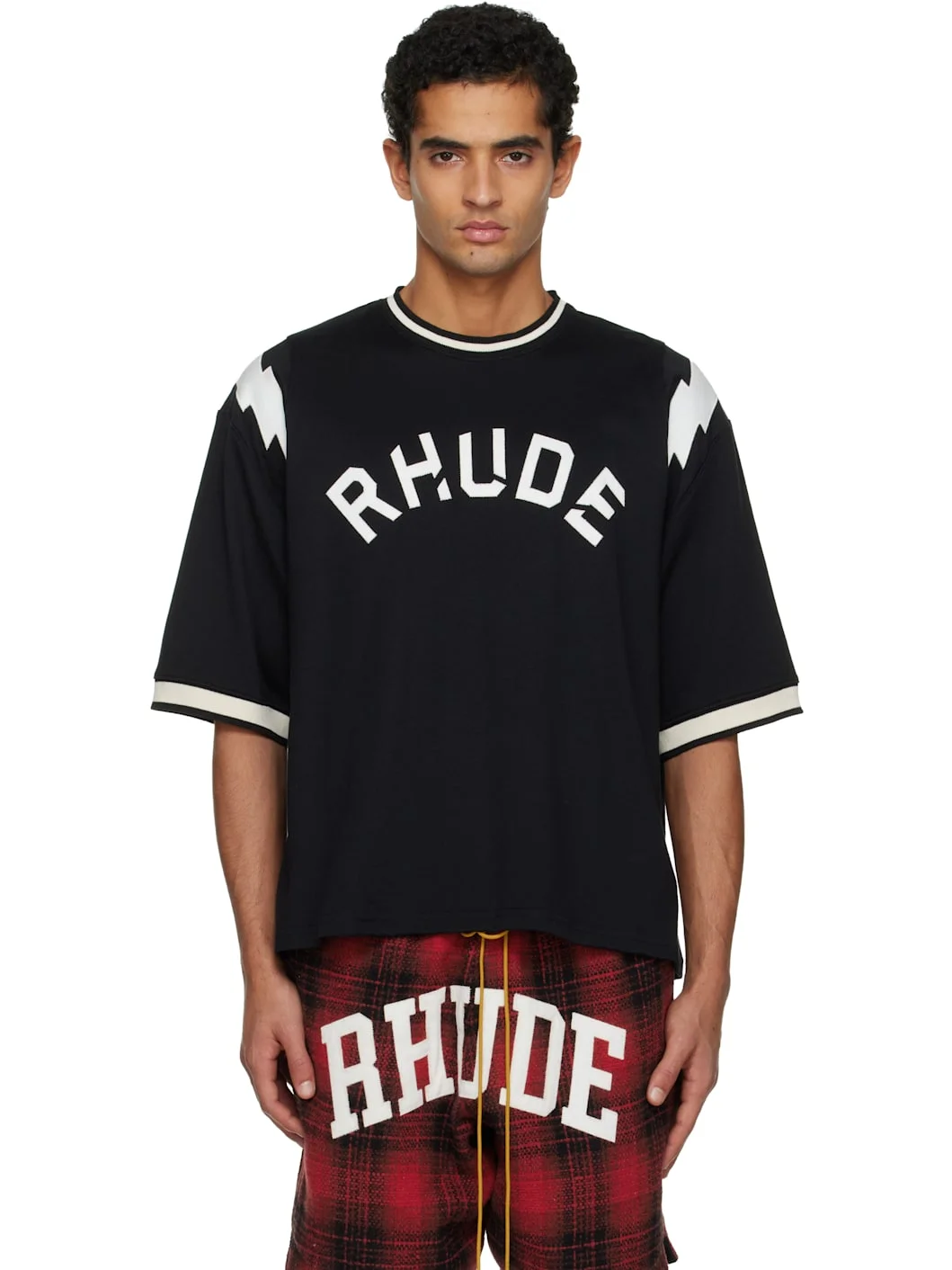 Black 'Rhude' Lightning Ringer Jersey T-shirt