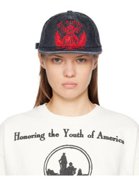 Denim cap. · Fading throughout · Embroidered eyelets at crown · Logo graphic embroidered at face and brim · Flat brim · Cinch fastening at back · Plain-woven lining Supplier color: Agoura black/Red 100% cotton. Made in United States 252923F016002