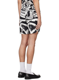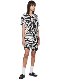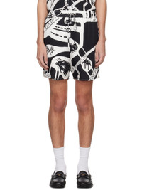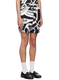 Hand-treated silk twill shorts. Logo graphic pattern printed throughout. · Drawstring at elasticized waistband · Three-pocket styling · Vented cuffs · Unlined Supplier color: Black/White Body: 100% silk. Lining: 100% lyocell. Made in United States 241923M193048