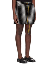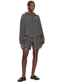 Polyester- and cotton-blend terrycloth shorts. Stripes throughout. · Drawstring at elasticized waistband · Three-pocket styling · Logo embroidered at hem Supplier color: Black/White 87% cotton, 13% polyester. Made in United States 241923M193027