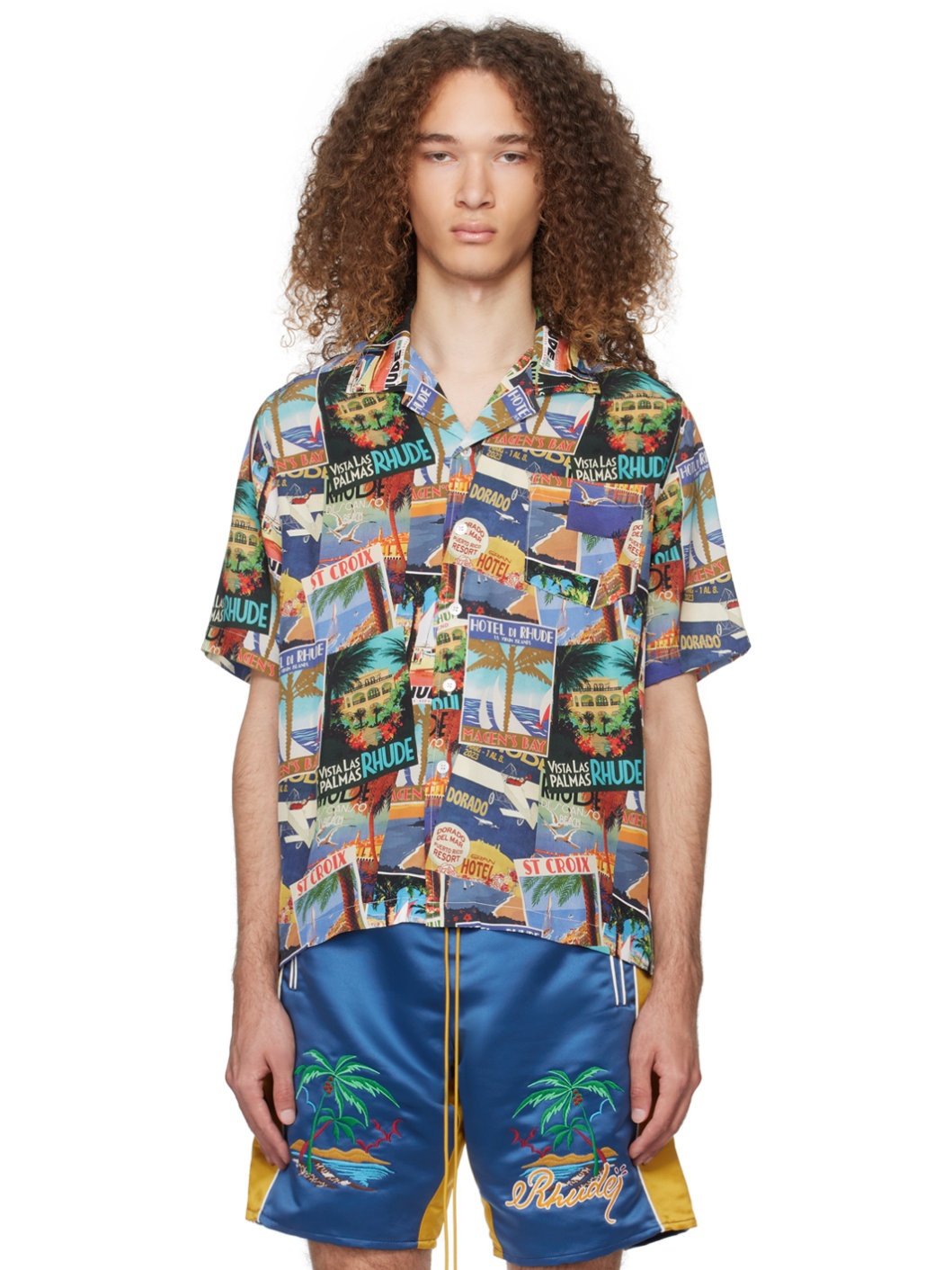 Postcard Camp-Collar Printed Silk-Twill Shirt