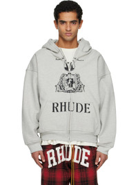 Cotton fleece hoodie. · Two-way zip closure · Logo graphic and text printed at front · Patch pockets · Rib-knit hem and cuffs · Dropped shoulders Supplier color: Heather grey/Black 90% cotton, 10% polyester. Made in United States 252923M202024