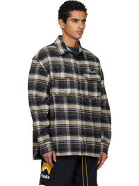 Navy & Beige 'Rhude' Script Flannel Shirt