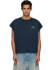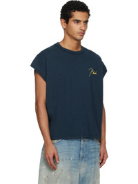 Cotton jersey T-shirt. · Rib-knit crewneck and cuffs · Logo embroidered at chest · Cap sleeves Supplier color: Navy 100% cotton. Made in United States 252923M213030