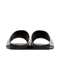 Padded twill slip-on sandals in off-white. · Open toe · Logo printed at padded footbed · Stacked leather sole with rubber injection Supplier color: Cream/Black Upper: textile. Sole: leather, rubber. Made in Italy 241923M234002