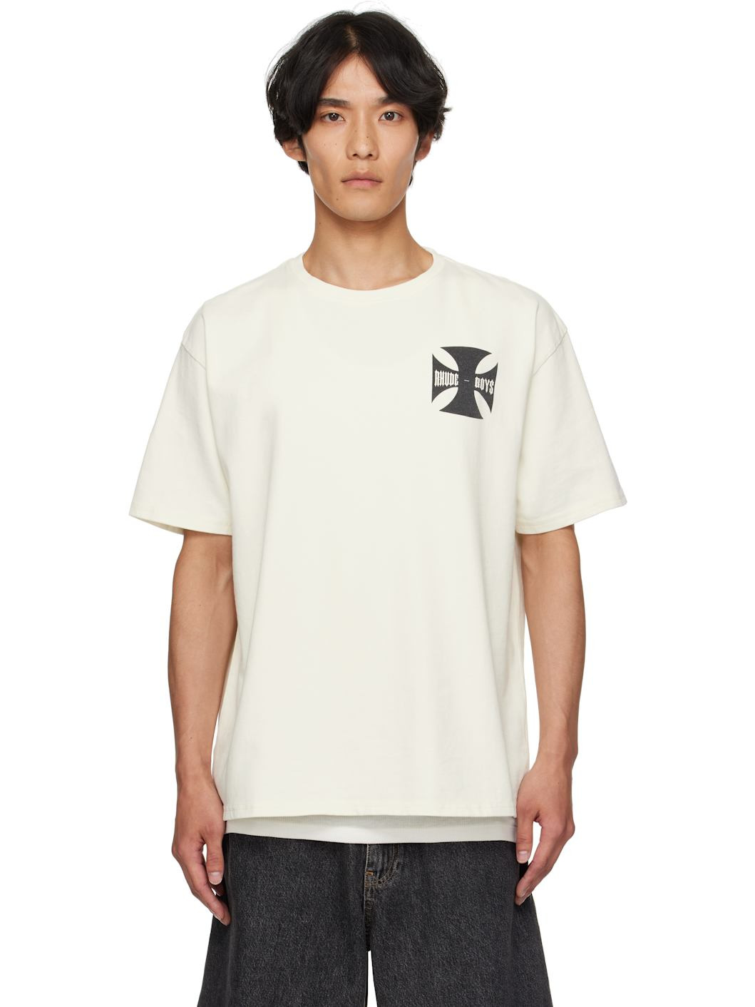 Cotton jersey T-shirt. · Rib-knit crewneck · Logo graphic printed at chest and back · Dropped shoulders · Text printed at back Supplier color: White 100% cotton. Made in United States 252923M213033