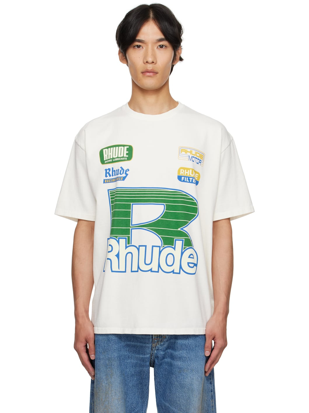 Cotton jersey T-shirt. · Rib-knit crewneck · Logos printed at front · Dropped shoulders Supplier color: Vintage white 100% cotton. Made in United States 252923M213021