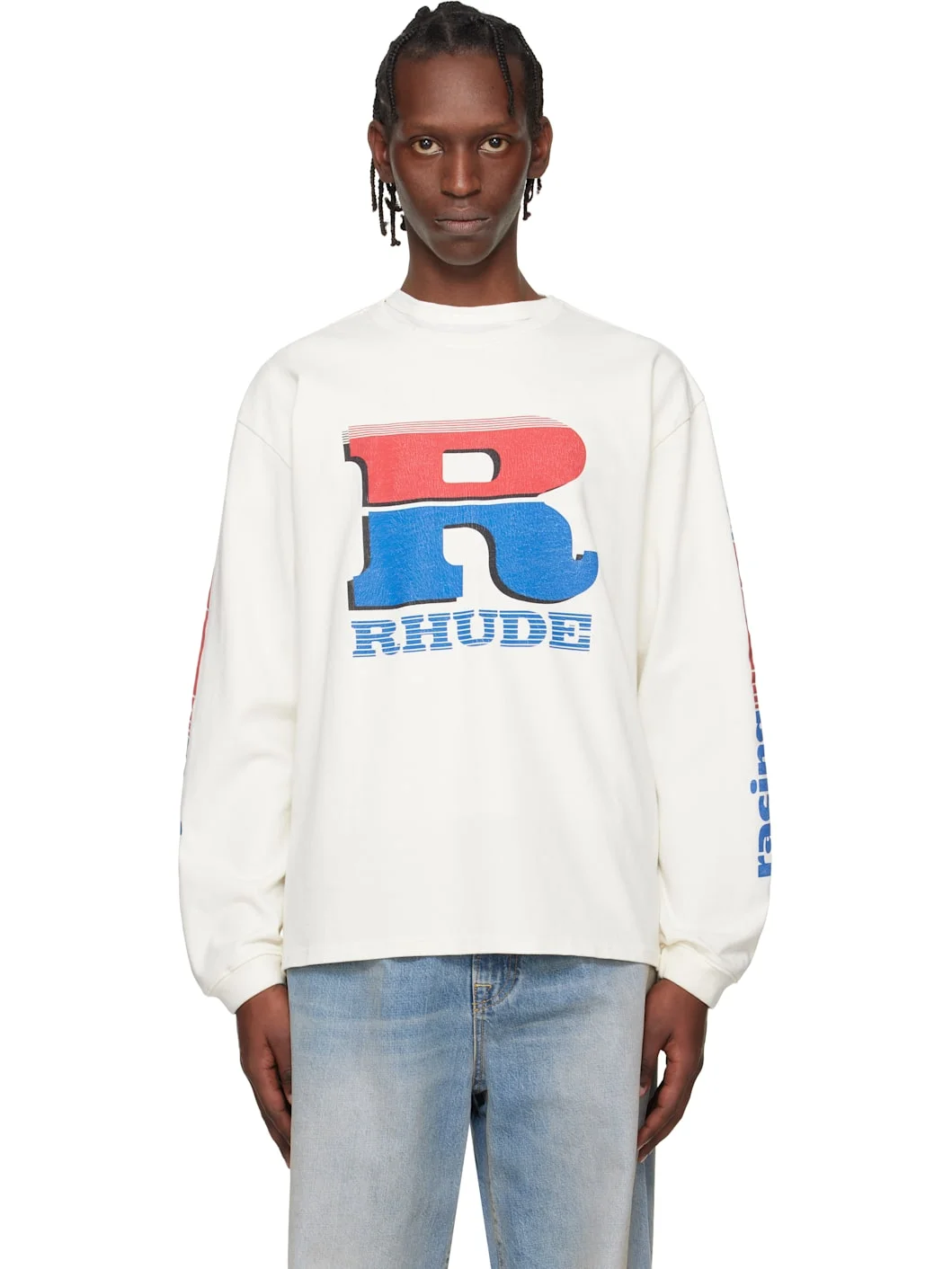 Cotton jersey T-shirt. · Rib-knit crewneck and cuffs · Logo printed at chest and sleeves · Dropped shoulders Supplier color: Vintage white/Red 100% cotton. Made in United States 261923M213001